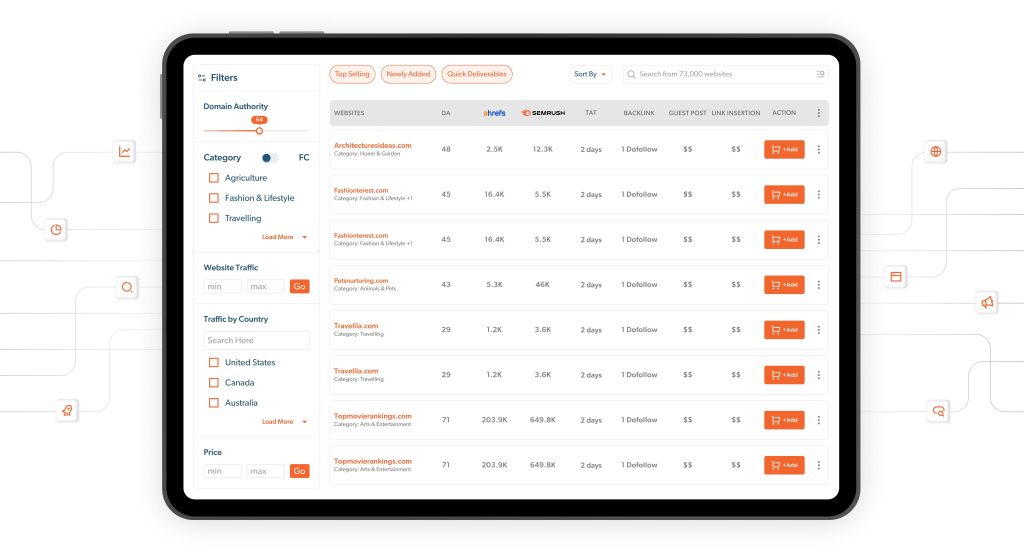 What’s good: Sheer volume. With 100K+ publishers across 50+ categories, you’ll find sites in almost any niche. The filtering is solid, and their writer marketplace means you can get content created if you don’t want to write it yourself. The 3-month link monitoring is a nice touch — if a link drops within that window, you’re covered.