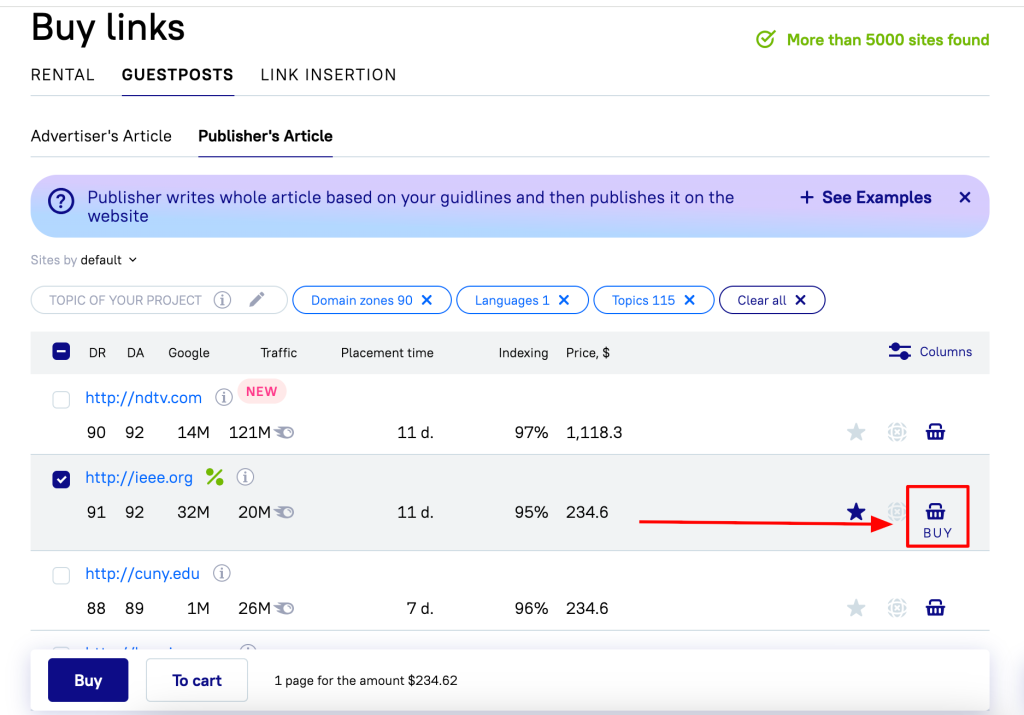 What’s good: Serpzilla offers both guest posts and rental links (temporary backlinks at lower cost), giving you flexibility based on your budget and strategy. The filtering is excellent with 40+ parameters, and the platform provides unique data points not found on competing marketplaces. Guest post pricing is competitive, especially for mid-range DR sites.